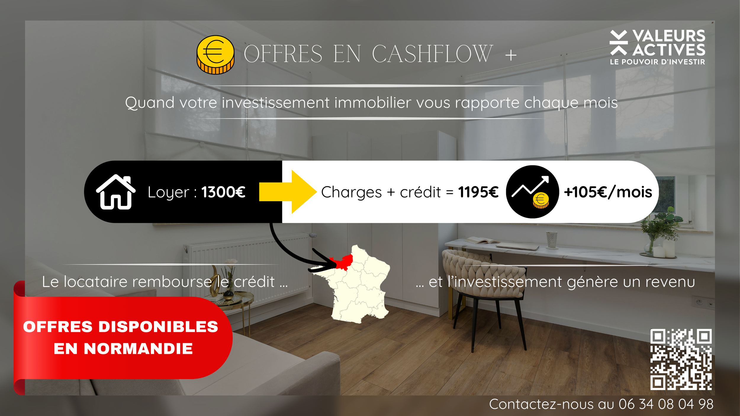 Nous proposons actuellement plusieurs opportunités d’investissement en Normandie, spécialement sélectionnées pour permettre aux investisseurs de viser un cashflow positif, généralement compris entre 100 € et 300 € par mois selon les projets.